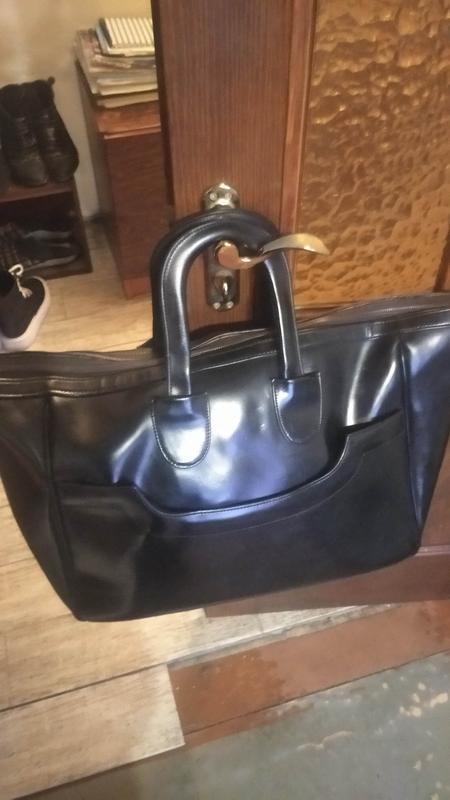продам дорожную, стильную, большую, вместительную сумку шоппер из черного гладкого кожзама, застегивается на молнию,спереди одно большое отделение,оно не застегивается, на фото показала,внутри одно отделение и по боком два больших кармана,длиной на всю сумку, отдаю недорого, есть небольшой нюансик, не виден, уголок внизу у дна сумки сдерт,и внутри сумки, сбоку ,чуть разорвана подкладка,на носку не влияет, в цене учтено,дно сумки имеет блочки ,чтобы ставить, замеры :ширина по верху вместе с углами 58 см, ширина по низу 42 см, ширина дна 15 см, высота сумки 33 см, носить сумку можно только в руке, плечевого ремня не предусмотрено