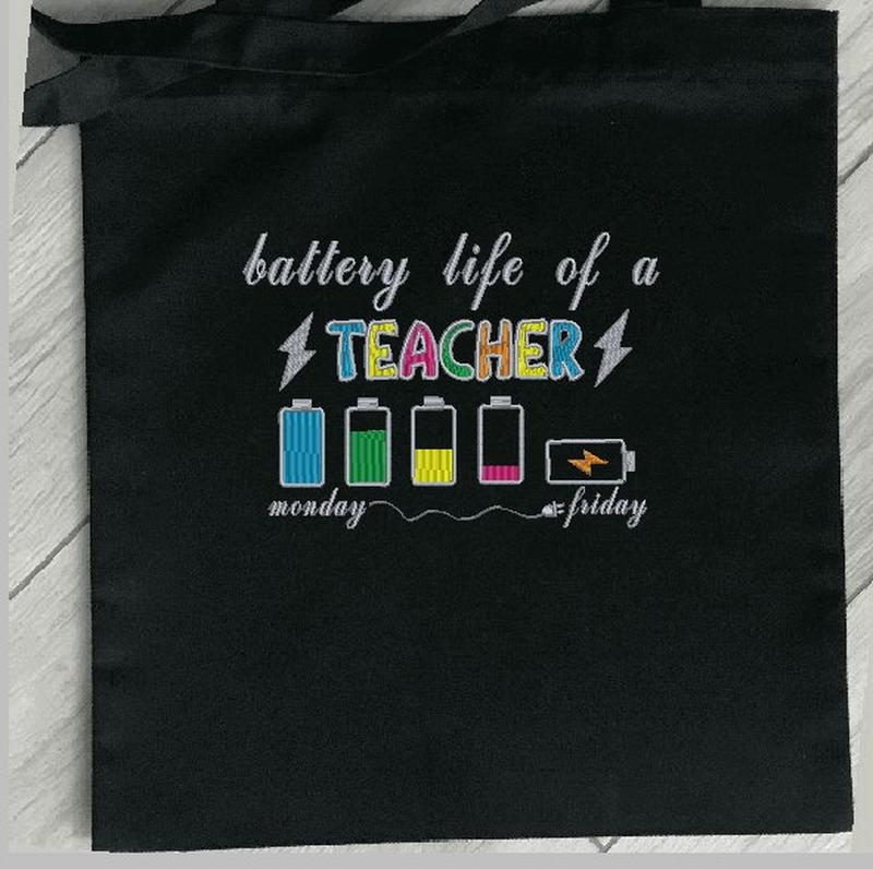 Шоппер для учителя, это отличный подарок, машинная вышивка, размер 38*42, длина ручки 60. Материал плотный саржа.