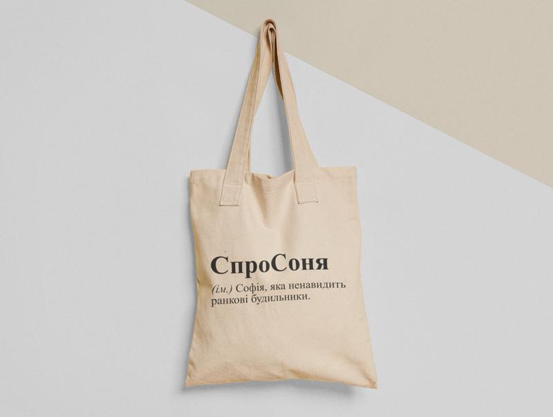 Эко сумка шопер с принтом спросоня соня софия, размер 38х40см, хлопок