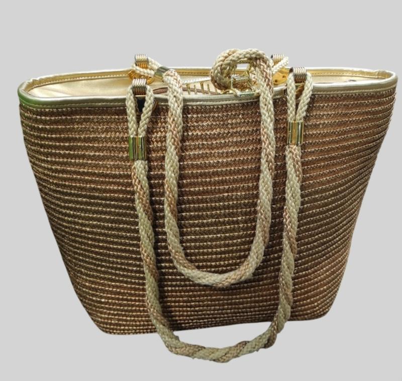 Шоппер, сумка соломянна золотистого цвета от бренда bags by warren reed