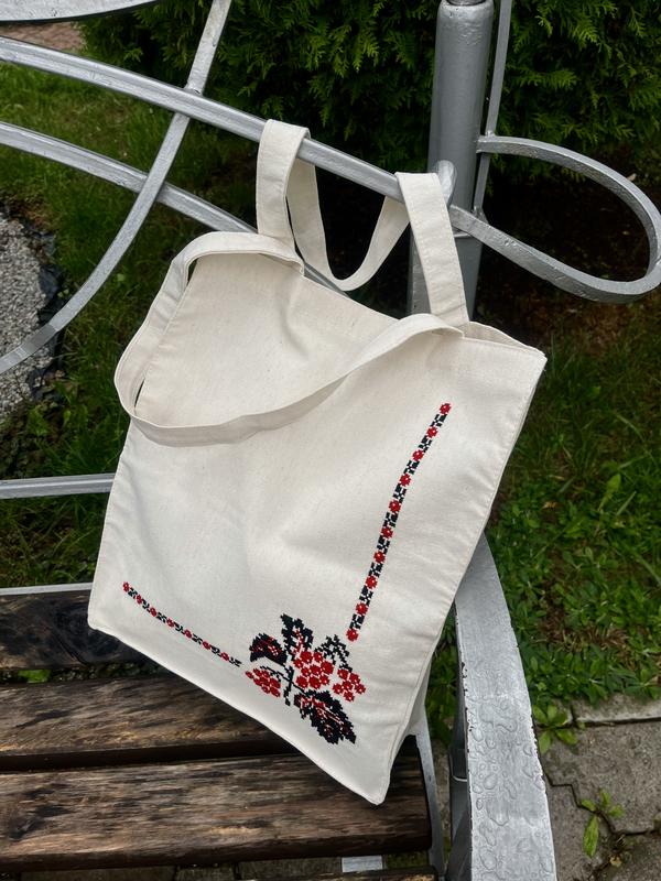 🌱Вишито хрестиком 🌱Ткань: хлопок (двонитка), шапка, выдерживает до 10 кг веса. 🌱Цвет основной ткани: натуральный бежевый украшение. Тканевая сумка, имеет долгий срок службы. Можно использовать для походов в магазин, на тренировки и прогулки и тд.🫶🏻 ❗️ВАЖЛИВО❗️Если Вы предоставляете материалы собственные, то оплата только за работу, по конструкции✅