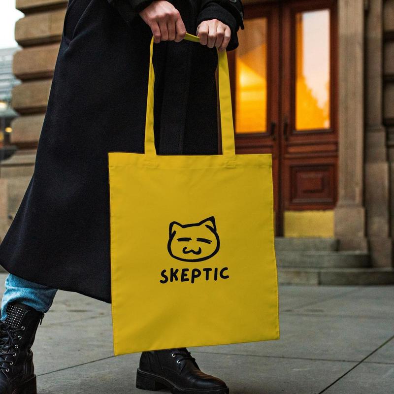 Сумка шопер із принтом "skeptic" жовта |швидка доставка|