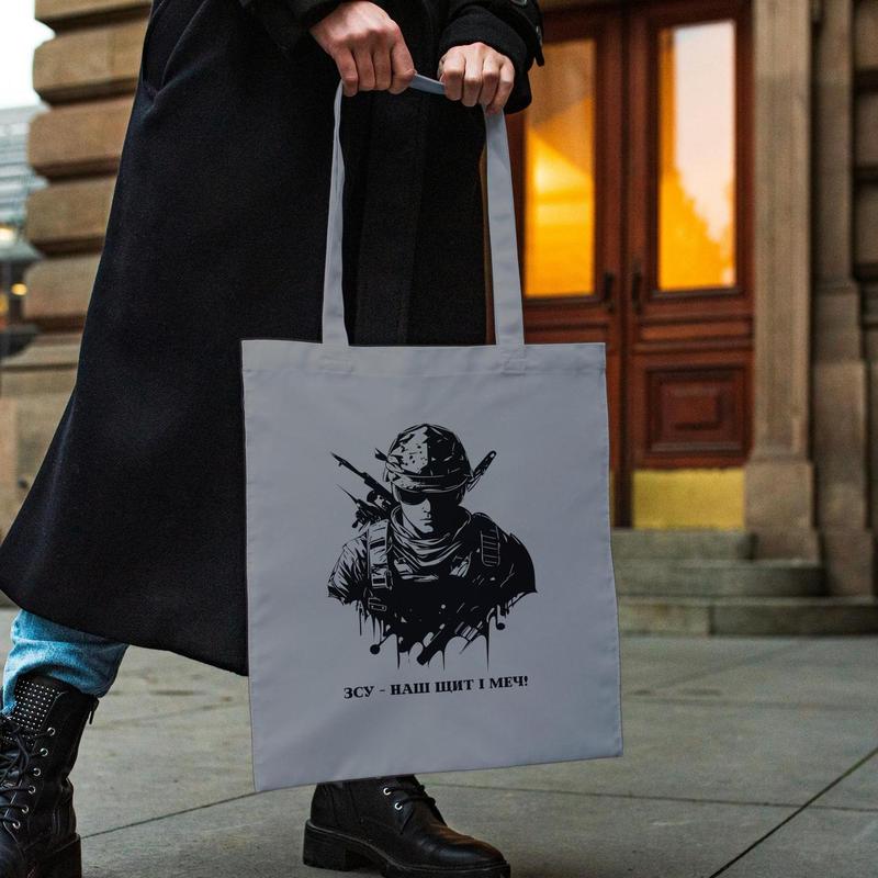 Сумка шопер із принтом "зсу наш щит і меч" сіра|швидка доставка|