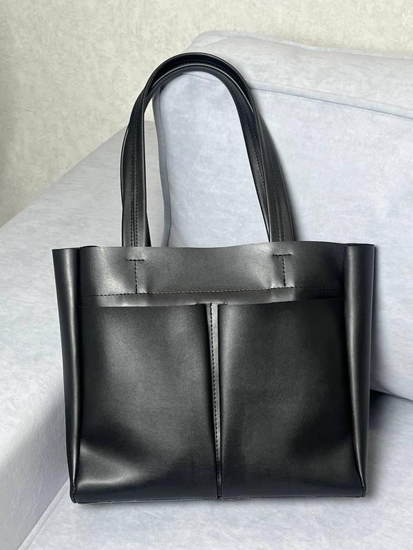 Стильний шопер формат А4 ✔️ Колір: чорний ✔️ Матеріал: якісна екошкіра ✔️ Розмір: 34*29*13 см •Формат А4 •Дві зручні ручки •Застібається на блискавку •Всередині одне велике відділення , дві кишеньки (одна з них на блискавці). •Ззовні спереду дві кишеньки, ззаду кишеня на блискавці