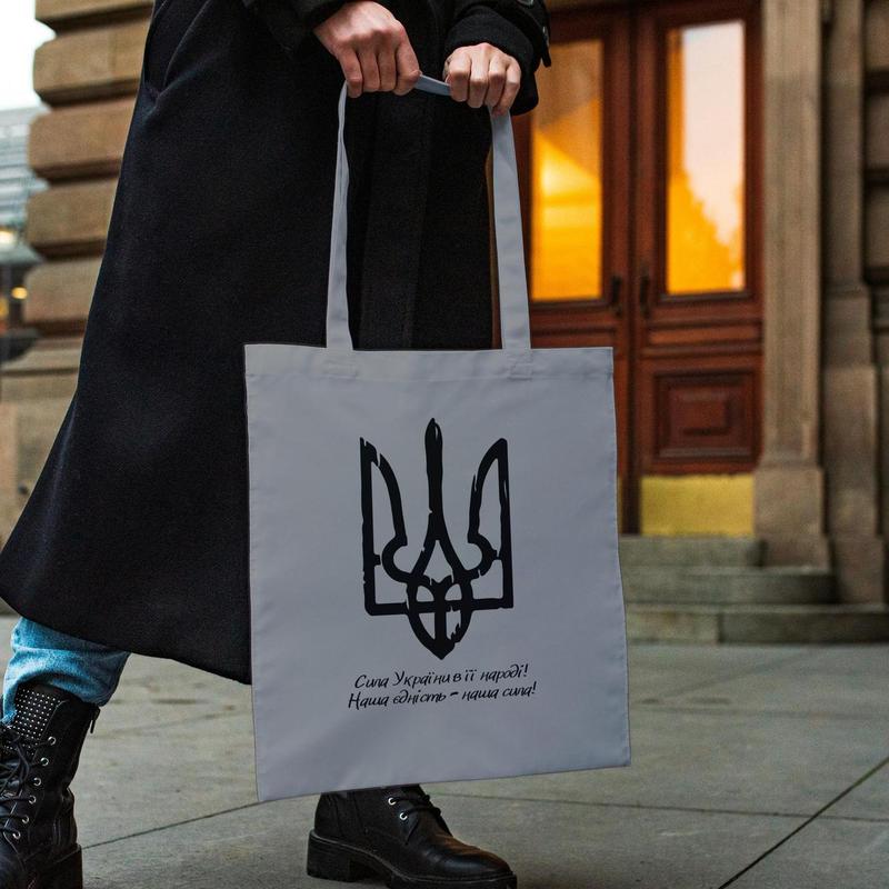 Сумка шопер із принтом "сила україни в її народі" сіра|вигідна ціна|