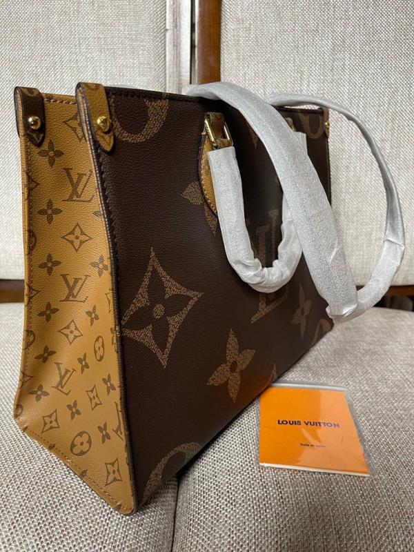 Женская сумка-шоппер выполнена из натуральных материалов (настоящий канвас + кожа, внутри тканевая подкладка), съемный регулируемый плечевой ремень, украшенный фирменным логотипом, в комплекте пыльник, бирка. Размер MM-35*27*14cm – 4200грн. Размер GM – 41*34*19cm – 440иигрн.