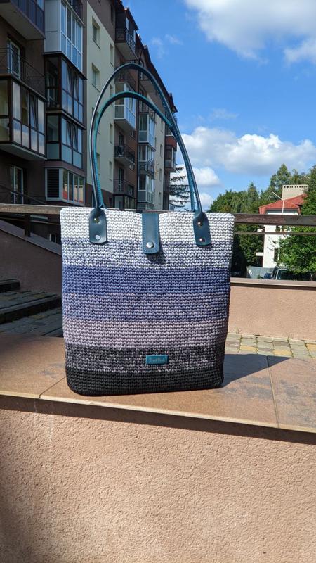 Вязаная сумка шоппер, ручной работы. Выполнена из полиэфирного шнура. Фурнитура из натуральной кожи Выполнена в едином экземпляре