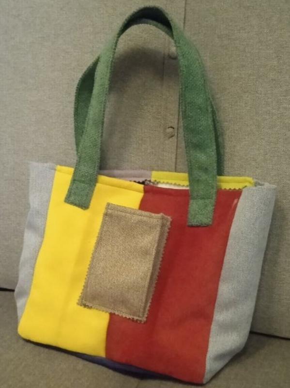 Сумка шоппер ручной работы, яркая, прочная, мягкая. На одно отделение, без застежки, имеет два кармашка, снаружи и внутри. Размеры: высота 24 см, длина 27 см, ширина 12 см. Две короткие ручки, 50 см.