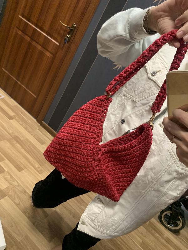 Сумка , ручної роботи. Створена з якісної нитки , насичений красивий колір, має золотисту фурнітуру на кнопці.