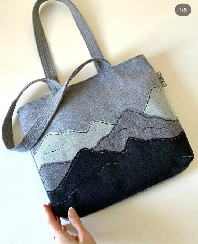 Авторська сумка з горами, в середині якого підкладка та кишеня, застібається на блискавку. Носиться на плечі Розміри 35х40 см