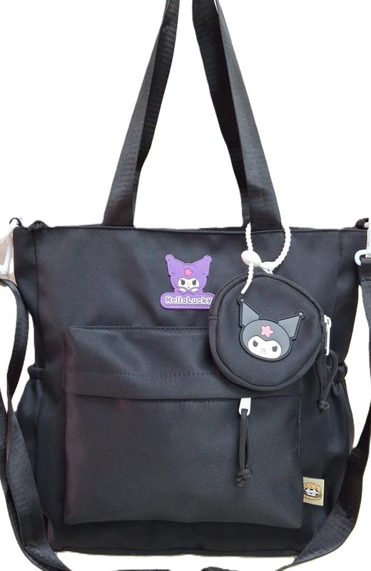 Женская сумка из ткани полиестр черного колеа. Вместительная и прочная,закрывается на молнию. Ручки универсальные, удобно носить на плече и в руках и на запястье. Описание: основной отдел вместительный -1 ячейка внутренняя -1 отдел снаружи на молнии -1 ячейки боковые -2 кошелек-брелок -1 Размеры: высота - 32 см длина — 31 см ширина — 9 см ручки — 55 см ремешок -120 см