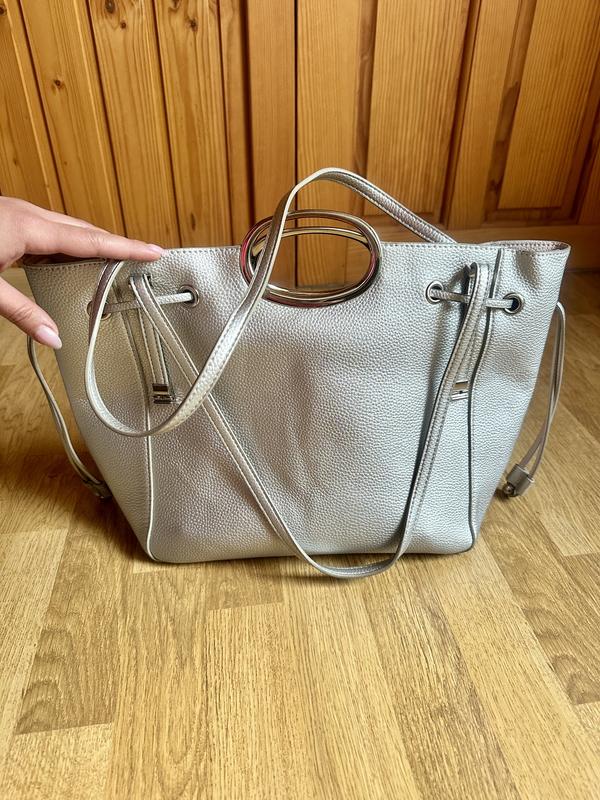 Сумка-шопер Parfois, серебристого цвета, внутри - розовая. В комплекте идет 2 сумки, внутренняя сумка нежно-розового цвета. Единственный нюанс - на фото.