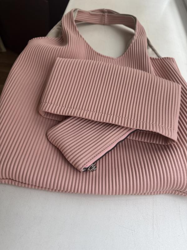 Сумка шоппер рожева, 3 в 1. З еко шкіри. Орієнтовні розміри - 40*40 см. В комплекті: сумка, велика косметичка та гаманець. Нова, без етикетки.