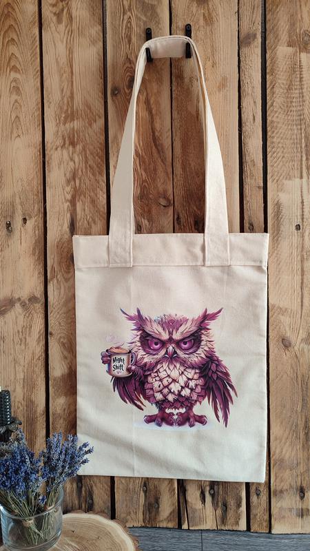 Сумка шоппер из саржи «night shift» | 30х40 см | сова с кофе