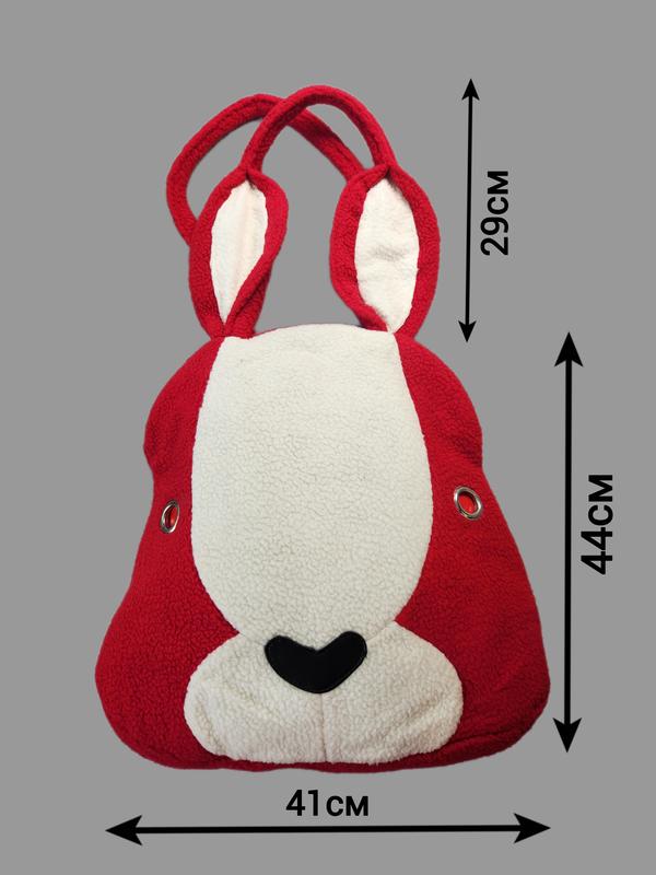 Необычная запоминающаяся сумка, которая точно привлечет внимание! Оригинальный дизайн в виде мордочки зайчика, мягкий материал и удобные ручки – все это делает эту сумку особенной. Подкладка флисовая, есть карман на молнии. Прекрасный подарок для тех, кто ценит креативность и индивидуальность.
