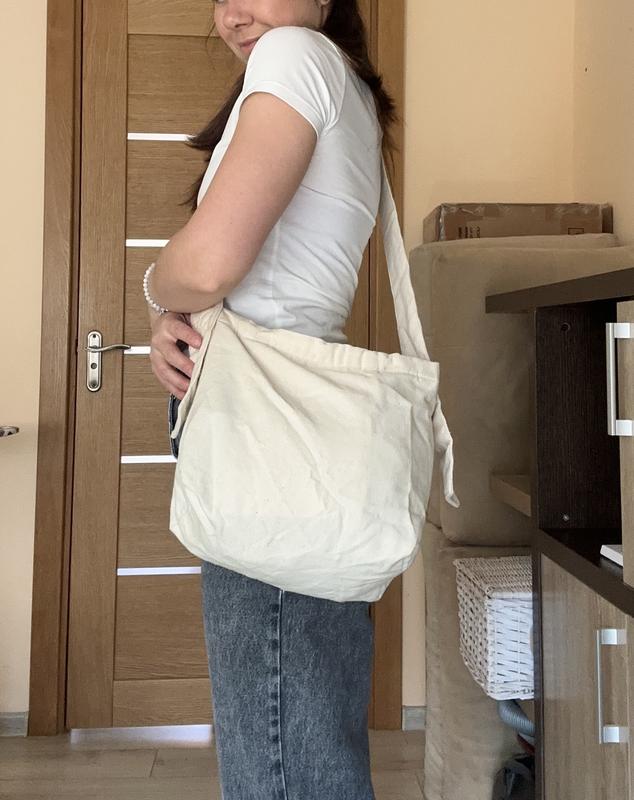 Шопер має одне основне відділення та внутрішню кишеню для дрібниць, застібається на блискавку. Довга ручка дозволяє комфортно носити як на плечі, так і через плече. • Матеріал: 100% бавовна • Розмір: 24×25×13 см • Довжина ручки: 100 см • Внутрішня кишеня для дрібниць • Вміщує ноутбук до 13 дюймів