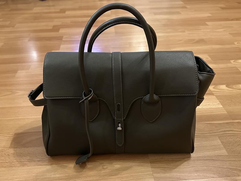 Большая зеленая сумка, подходит для формата А4. Сумка не имеет дополнительных ручек или креплений под них, на молнии и функциональной и декоративной застежке дополнительно. Замеры: Длина по низу 37 см (фактически через бока получается больше) Высота 27 см Ширина 15 см Папка А4 хорошо лежит и закрывается вверх без проблем Продаю, потому что у меня много сумок и эта довольно долго лежит без дела.