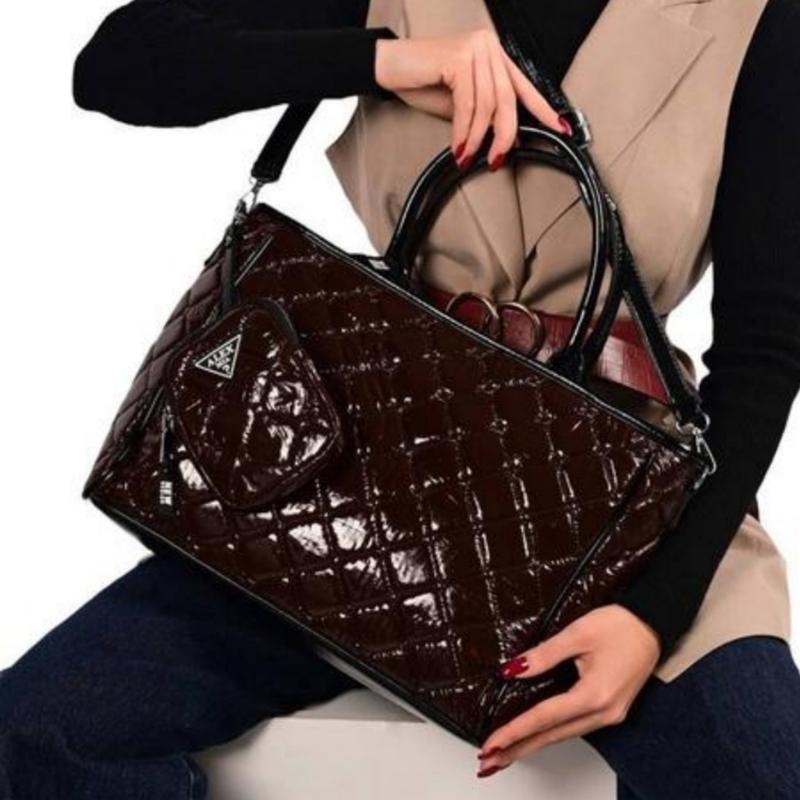 Сумка женская Материал верха эколак Прочные ручки В комплекте длинный ремешок и кошелек Внутри общее отделение с перегородкой (карманом), и меньшие отделения Замеры Высота 27 см Ширина 34 см по дну, 42 см по верху Глубина 11 см