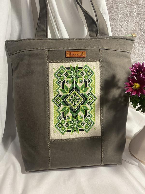 Для прогулянки чи шопінгу потрібен гарний аксесуар. Тому ця стильна унікальна сумка може стати вам впригоді. Ручна вишивка надає їй шарму та вишуканості. Всередині підкладка з накладним карманом для телефона чи інших потреб. Застібка «блискавка». Довгі ручки для зручного носіння як у руках так і на плечі Висота сумки 40см Ширина 35си Ширина дна 10см Довжина ручок 56см