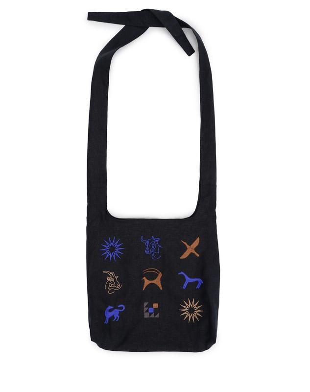 5592 этнодим с вышитыми животными. Ручки завязываются, как удобно. Теоретически можно носить на поясе. Тканина льон. Ширина 38см. Высота 35см. Длина ручек по 82см. Новая, ни разу не носилась.