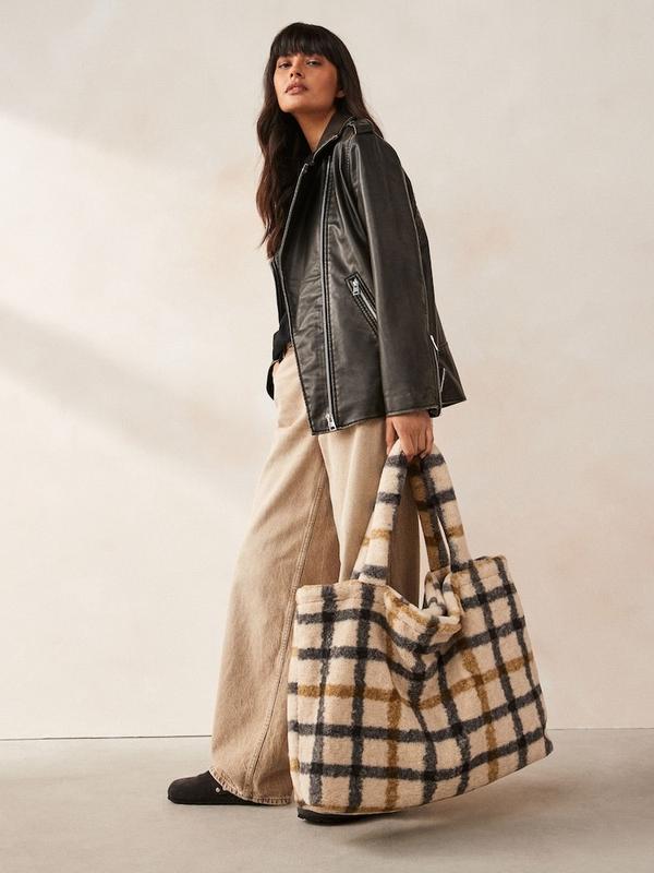 Сумка-шопер Borg у клітинку Next, нова Вмістке внутрішнє відділення, є Відділення на блискавці для мобільного телефону, Закриття : З магнітною застібкою Заміри ширина верх 61 Ширина низ 61 висота 40 Дно 50 * 13 Ручки 61, ширина 5