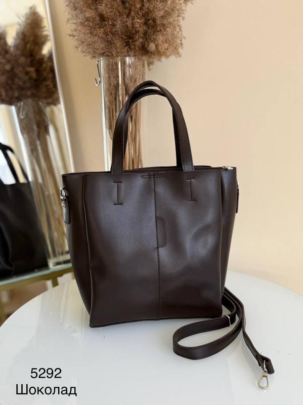 Женская сумка большая темно коричневая шоколадная трапеция из кожзама из эко кожи с длинны...