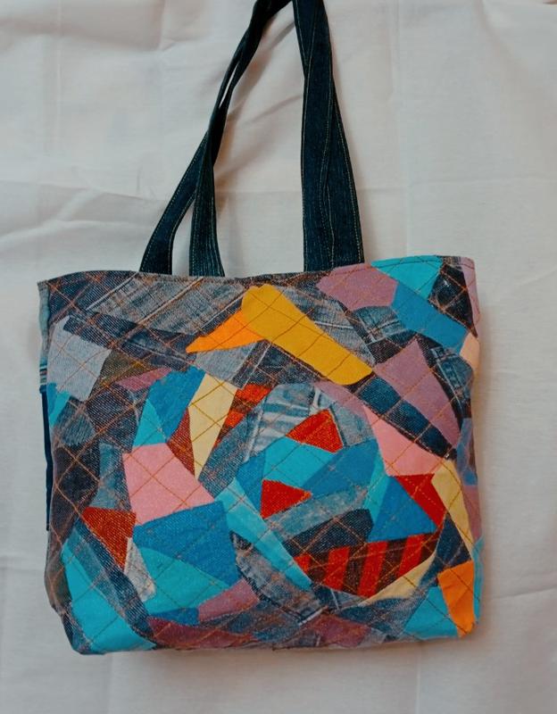 Вторая жизнь джинсов - сумка в стиле печворк, джинсовый шоппер, ручная работа Размер 40х36, ручка 65 см