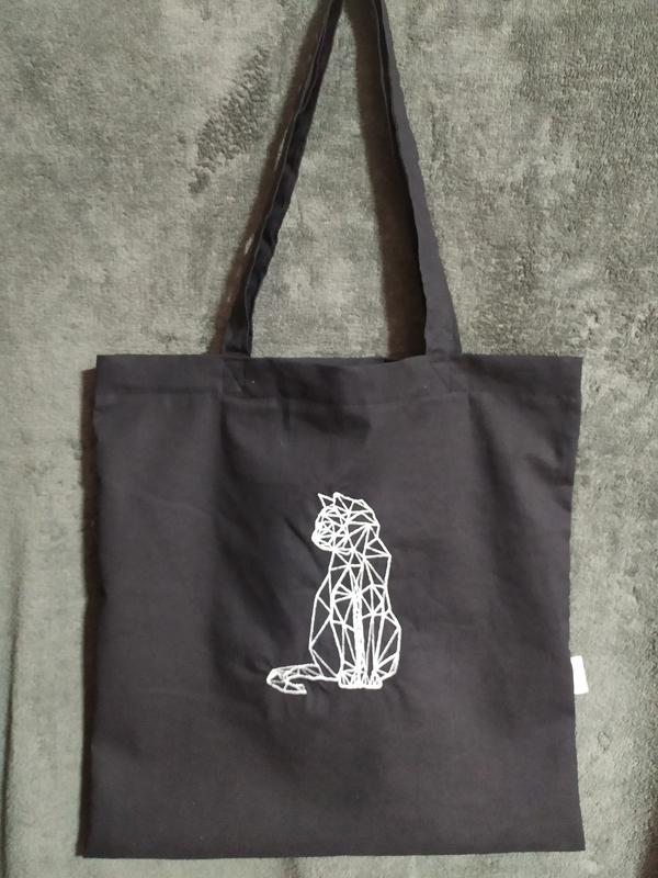 Сумка из черной бязи -хлопок100%,внутри в виде бонуса небольшой потайний кармашек для ключей,кошелька или документов,рисунок выполнен с помощью машинной вышивки.Длина ручек 60см.размер39*39