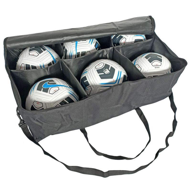 Сумка - валіза для м'ячів виготовлена з нейлону щільністю 600 мкр. Сумка має регульований ремінець для простоти перенесення. Тканинний каркас цієї сумки розділений усередині елегантними картонними перегородками, які кріпляться усередині сумки липучками Velcro. Наповнюваність сумки - 6 м'ячів 5 розміру. Сумка має досить специфічний дизайн, який швидко набирає популярності.