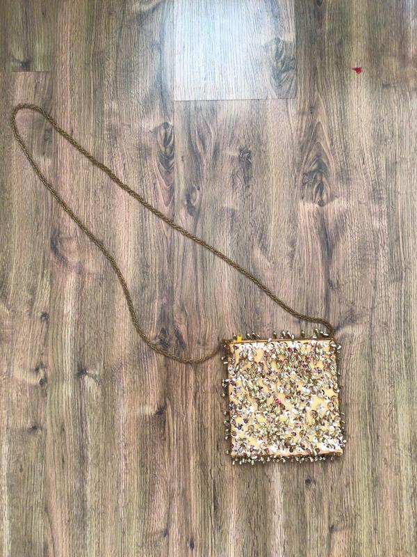 Вінтажна сумочка. Ручка плетена бісер. Декорована паєтками і бісером, закривається на замочек, розмір 17 на 17, довжина ручки 63 см.