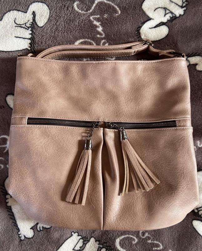 Велика сумка, зручна, є багато відділень та кишеньок. Є довгий ремінець. Стан нової сумки, ні разу не носилася!