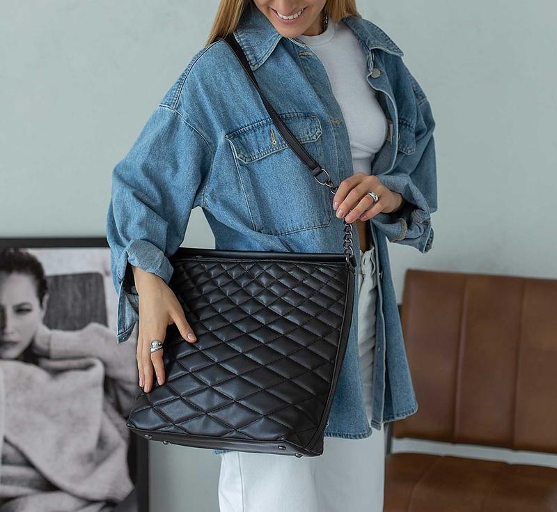 Женская сумка вмещает формат А4 Сумка женская выполнена из экокожи высокого качества. Сумка открывается при помощи молнии, вмещает формат А4. Внутри сумка на плотной подкладке, имеет два отделения, между которыми вшита косметичка. Также внутри есть два кармана: открытый и на молнии. Длина плечевого ремня 80 см. ДЛИНА 36 см. ШИРИНА 12 см. ВЫСОТА 30 см. Данная модель в ограниченном количестве на складе и быстро разбирается. После оформления заказа с Вами свяжется менеджер, уточнит данные по заказу, проверит наличие товара и скинет реквизиты для оплаты. Наш ********* с отзывами ************************************* Весь ассортимент подобных новинок: *****://******* *********************************************