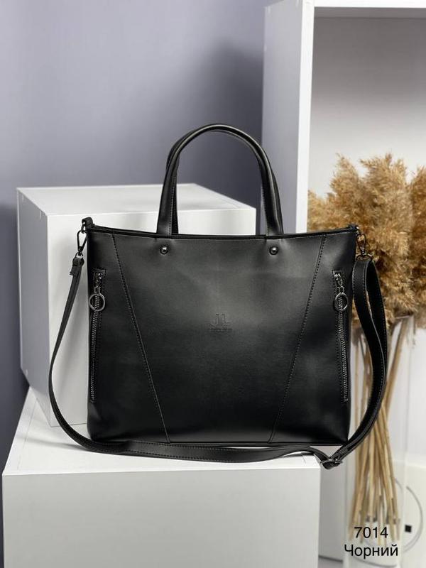 Матеріал: Екошкіра виробництва Туреччини. Колір фурнітури: темний нікель. Розміри: 34х29х10 Особливості: Одне відділення на блискавці, розділене навпіл відділенням на блискавці. Всередині кишеня для телефона та кишеня на блискавці. На зворотньому боці кишеня на блискавці. На лицьовій стороні дві кишені на блискавках. В комплекте плечовий ремінь (135 см без карабінів).