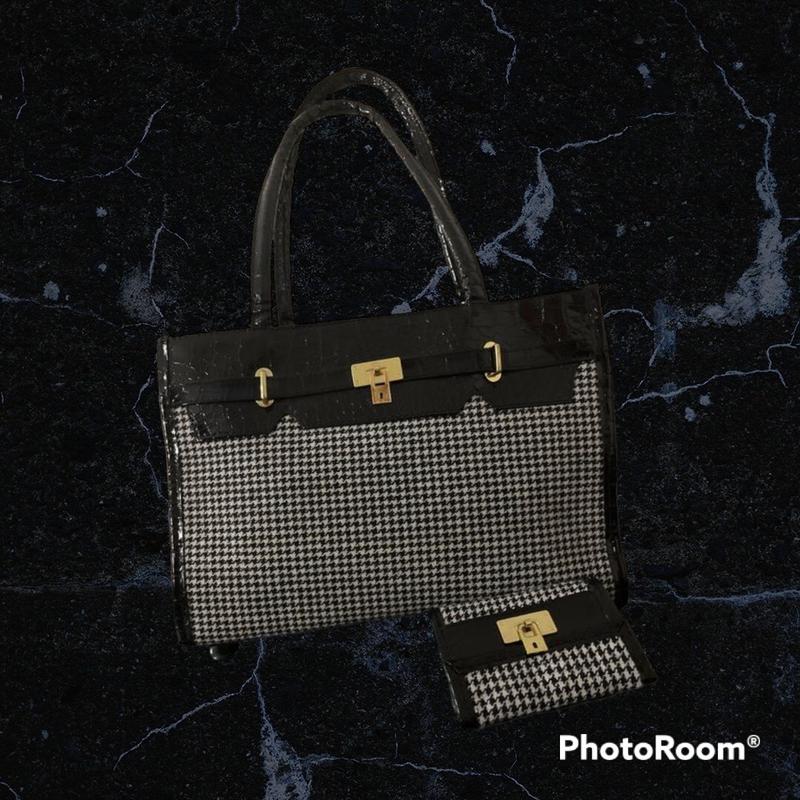 Виготовлені з тканини і лакованої шкіри Сумка: ширина - 34 см, висота - 25 см, дно -10,5 см, довжина ручок -22 див. Гаманець: 12,5*9 см ( у складеному вигляді)