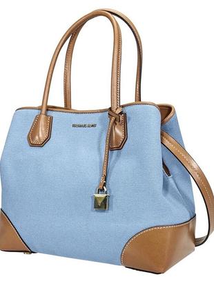 Сумка від Michael Kors Модель Mercer Gallery Оригінал Б/у, стан на фото Тканина під джинс Трохи *загорілі* ручки та вибілені місця на тканині, на загальний стан не дуже впливає Зберіглися оригінальні бірки