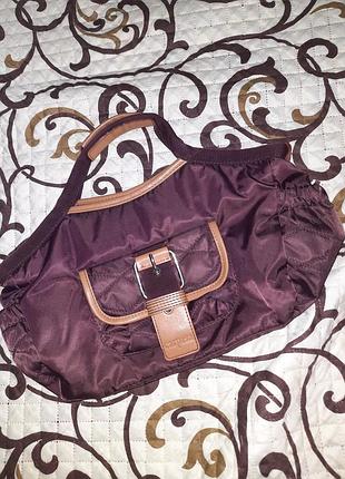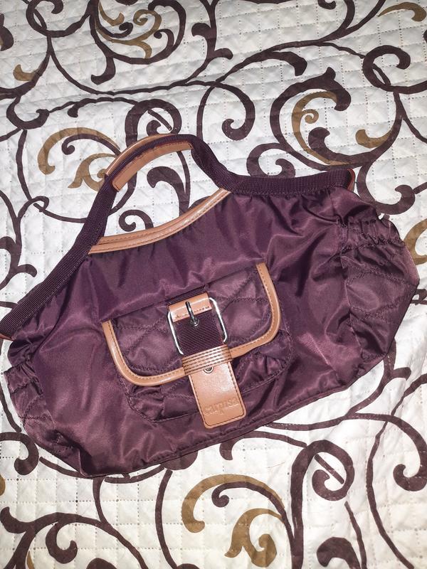 Сумочка небольшая 25×15×11 см. Состояние очень хорошее. Нет дыр, царапин, пятен. Внутри одно отделение, есть три маленьких кармашка. Снаружи один кармашек на магните и два по бокам на резинке. На фото видно. Все замки рабочие. Сумочка мягкая. Ручки короткие. Длинный ремешок не предусмотрен. На одной ручке есть трещенка (на фото видно)