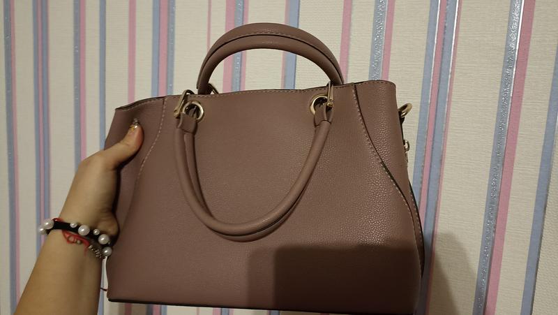 Стильна сумочка із короткими ручками Довжина - 31 см Висота - 20см Висота ручок - 16 см Ручки не потріскані, але спереду ледь видно,полоски трішки стерлися останнє фото
