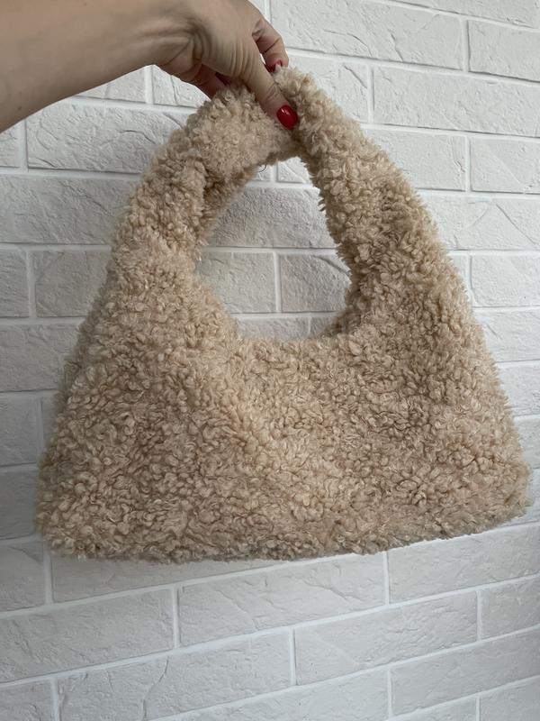 Тканина з суміші вовни, тканина з ефектом овчини, середній розмір, коротка ручка, застібка на кнопці, внутрішня підкладка Склад: 90% поліестер, 10% вовна Оригінал Нова з бірками Ціна остаточна Обміну/повернення немає