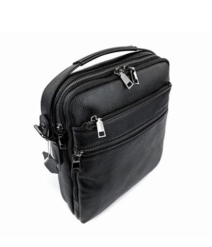 Чоловіча шкіряна сумка виконана з натуральної шкіри з примиренням якісної металевої фурнітури. Сумка має два відділення на блискавках. Дві кишені на передній і один на тильній стороні сумки. Текстильний ремінь, максимальна довжина ременя 155 см. Також є зручна шкіряна ручка. Розмір: - висота 26 см; - ширина 23 см; - глубина 9 см. Якість гарантуємо! 🚚щоденні відправлення