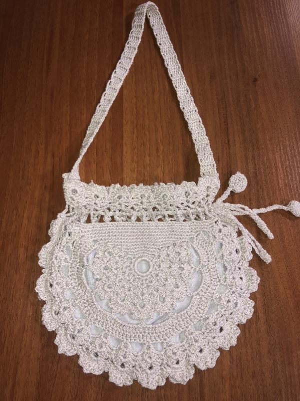 Висота - 21 см., ширина - 24 см., довжина ручки - 30 см.. Фото зі спалахом та без. Люрексова нитка (добре видно на останньому фото). Для поціновувачів ручної роботи. З будь-яких питань пишіть, з радістю відповім 📩. Відправлення Новою та Укрпоштою 📦📤.