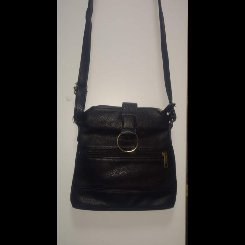 качественный заменитель кожи, малененькая и удобная сумочка,стан отличный. Высота-22см. Ширина по верхней части-18см.,ширина по низу-23см. Ремень-121см., можна больше и меньше делать. В середине одно главное отделение и два маленьких кармана, с наружи один карманчик.