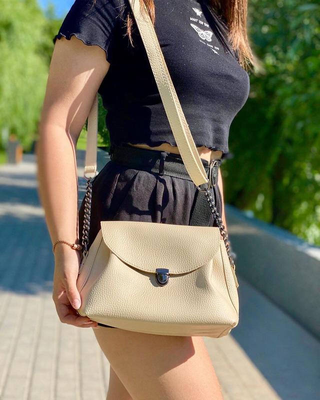 ЦВЕТА - пудровый(56310), зеленый(56308), серебро(56311), бордо(56307), бежевый(56309), черный(56304) Молодежная сумка Софи выполнена из кожзаменителя высокого качества. Крышка открывается при помощи собачки. Под крышкой сумка открывается при помощи молнии. Внутри сумки плотная подкладка, два кармана: открытый и на молнии. Снаружи есть карман для мелких предметов. Плечевой ремень украшен цепочкой, высота регулируется, благодаря чему сумку можно носить на плече и через плечо. Максимальная длина плечевого ремня 145 см. МАТЕРИАЛ эко-кожа ЖЕСТКОСТЬ мягкая ТИП ЗАСТЕЖКИ молния ОТДЕЛЕНИЯ 1 отделение ПЛЕЧЕВОЙ РЕМЕНЬ да ДЛИНА 23 см. ШИРИНА 11 см. ВЫСОТА 16 см. Оплата 100% на карту Приватбанка. Доставка: Новой почтой - пн - чт, сб Укрпочтой - пн, чт. Доставка за счет покупателя.
