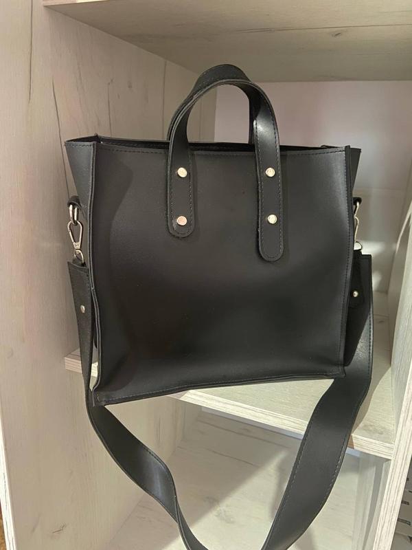 Дуже гарна та стильна,стан нової,ніяких нюансів немає, можна носити як в руках так і є широкий ремінь на плече Висота 28 см Ширина 30 Бік 12