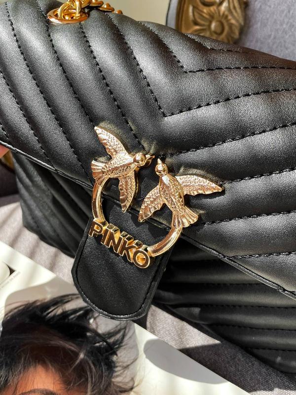 Pinko Lady Love Bag Puff v Quilt Black Gold Ціна: 1700 грн Розмір: 26 х 15 х 9 см Матеріал: еко шкіра Опис: Люкс якість! Сумка зроблена з еко шкіри. Фурнітура металева, застібка магнітна. Всередині два великих відділення, які між собою розділяє перегородка з кишенькою на блискавці. Ремінець сумки - це золотий ланцюжок з ручкою із еко шкіри з брендовим логотипом. Комплект: пакувальний папір і біла не бренд коробка.