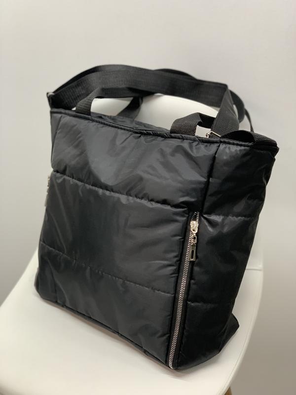 Сумочка дутыш на двух ручках+длинный регулируемый ремешок; Внутри одно большое отделение; Спереди два вертикальных кармана на молнии; Размер длина:33 см; ширина:13 см; высота:32 см; Цвет чёрный 🖤
