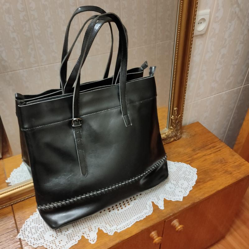 Сумка черная. Застежка молния. В середине с подкладкой. Размер ширина 40 см, высота 35 см.