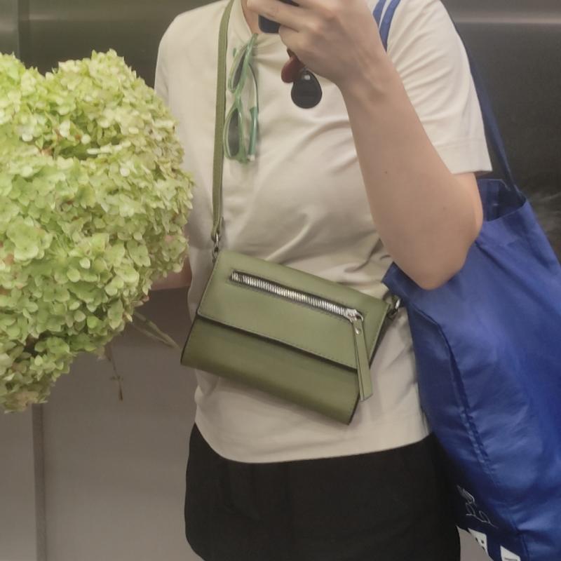 На довгий ремішок. можна регулювати. Оливкового кольору. В середині один відділ і є кишеня на замочок. Потертостей немає. Маленька і вишукана доповнить ваш стиль.