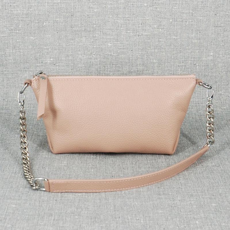 Міні-сумочка кроссбоді з натуральної шкіри к64 пудра