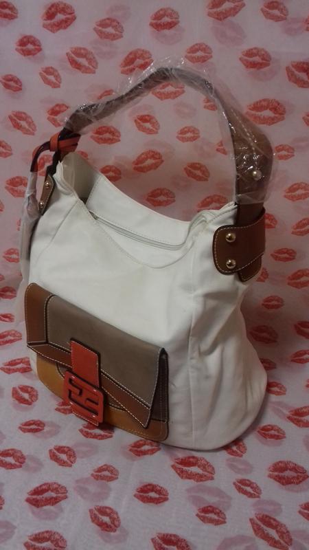 Интересная сумка хорошего качества, довольно вместительна и удобная, впереди карман. Внутри два больших отдела и дополнительно маленькие. Есть браки видно на фото небольшие пожелтения и потертости внизу и возле ручек. Замеры: длина 35,5 см, ширина 25 см, высота 30 см.