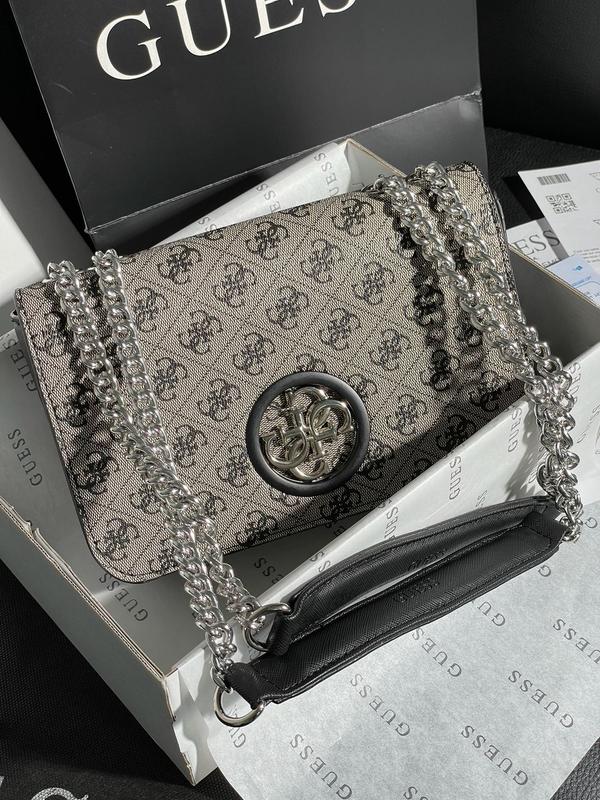 👜 Guess Zadie Total Black (Арт: 17031) 💵 1650 грн 📐 Розмір: 22 х 16 х 7 см 🧵 Матеріал: Еко Шкіра 🔎 Опис: Сумка виготовлена з еко шкіри з фірмовим принтом. Усередині одне відділення, також є кишенька на блискавці. Підкладка у сумки із текстилю з брендуванням. Як ремінець - важкі ланцюжки, з ручками з екошкіри. Можна носити як у руці, так і через плече (регулюються ручки). Комплектується в брендовій коробці (за додаткову плату можна придбати фірмовий пакет, пильовик та документи). Для замовлення пишіть 💌 #guess